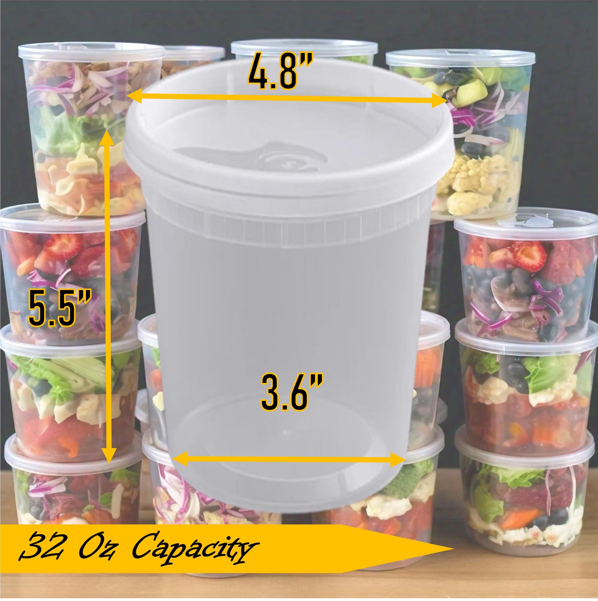 Mr. Miracle 16 Oz Food and Multi-Purpose Plastic Deli Containers with Matching Lids. Sealable. Non-Leaking. Microwavable, Freezer and Dishwasher Safe