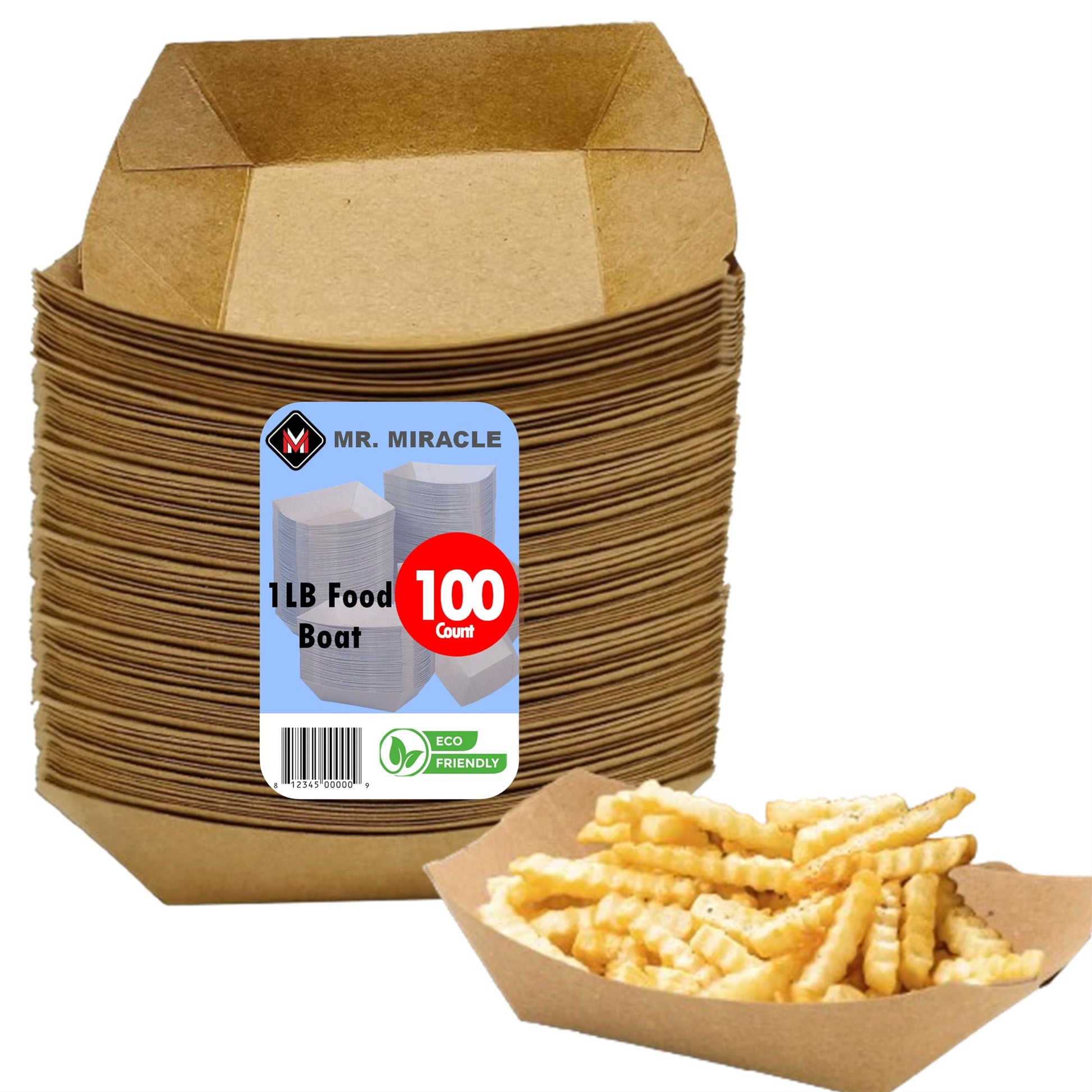 Mr Miracle White and Red Paper Food Tray. 1-Pound Size. Disposable, Recyclable and Fully Biodegradable. Made in USA